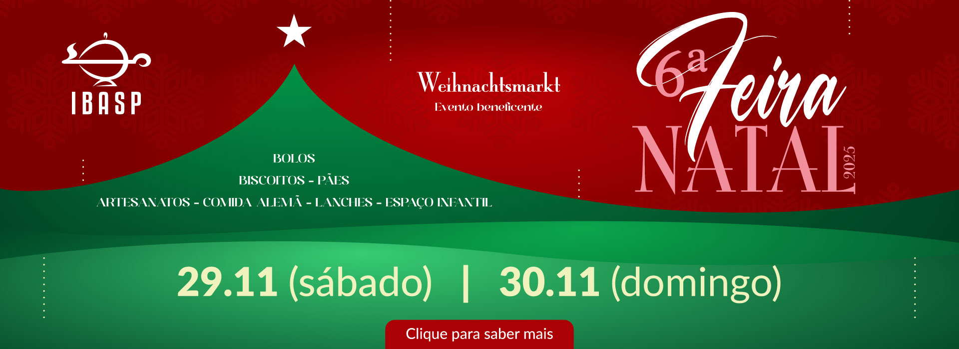 Vem aí a já tradicional Feira de Natal da Ibasp, agora em dois dias: sábado (29/11), das 15h às 20h domingo (30/11), das 11h às…